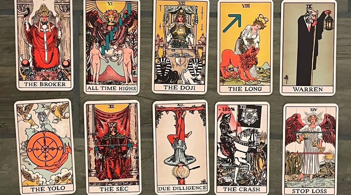 В эту готическую колоду вошли новые карты, в том числе Суд FTX, Слепой GPT, Падающая Luna, Беспощадный Генслер и Банкрот Силиконовой долины. Готовы принять тёмную сторону, чтобы увидеть будущее финансового мира?