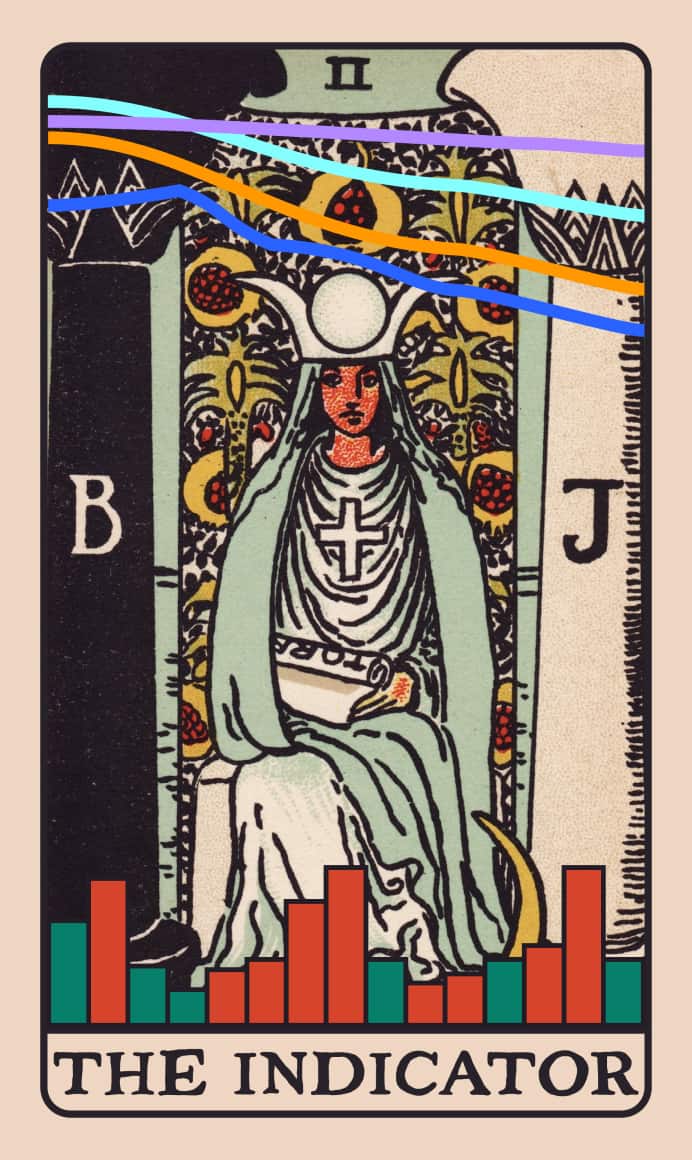 Мы выпустили эту колоду, когда рынок был на подъёме. В неё входит 78 карт Старших и Младших Арканов, среди которых Выход, Лонг, Шорт, YOLO, Луна и многие другие. Прикоснитесь к нашим ярким картам, чтобы почувствовать силу магических индикаторов и узнать все тайны движений рынков.
